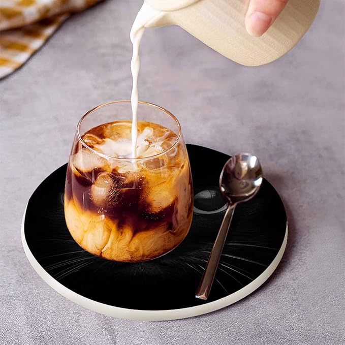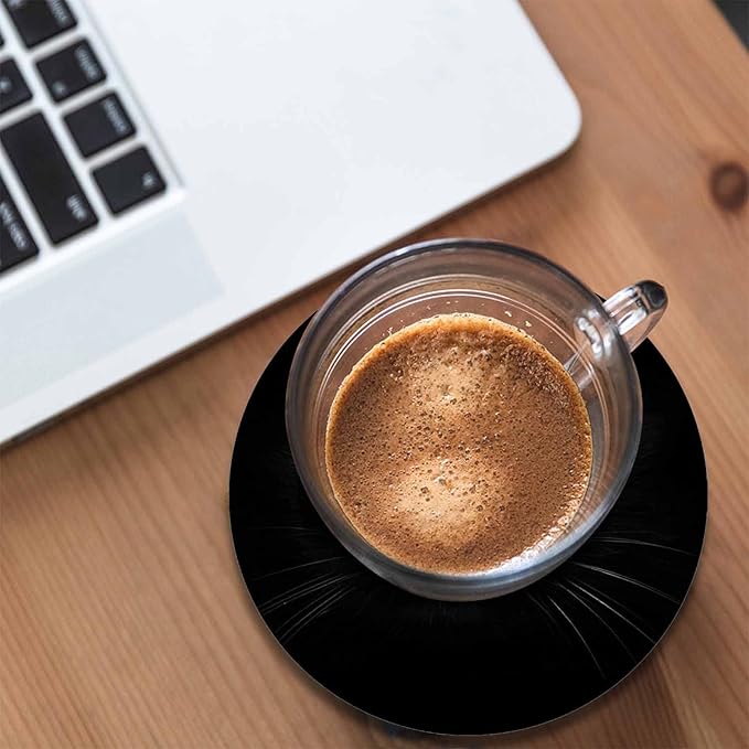 Black Cat Eyes in Dark Coasters for Drinks Lonely Black Kitten Closeup Look Cool Domestic Breed Pet for Tabletop Protection Coffee Table Living Room Kitchen Office Home Decor 2 Pcs,4 Inch