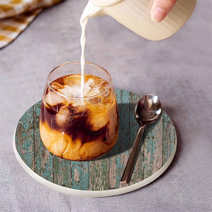 Shabby Wooden Background Coaster for Drinks Individual Vintage Board Cracked Surface Retro Farmhouse Wall Presents for Housewarming Birthday and Family 100% Diatomite 4''X 4'',2 Pack