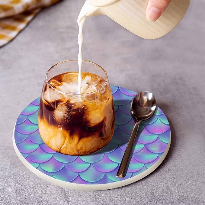 Mermaid Tail Coaster for Drinks Individual Mesh Gradient Mermaid Fish Skin Presents for Housewarming Birthday and Family 100% Diatomite 4''X 4'',2 Pack