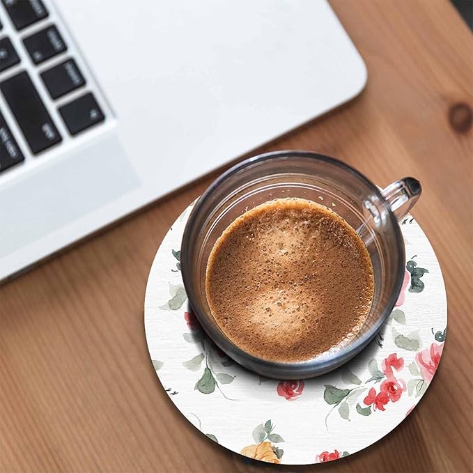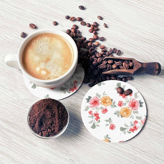 Pastel Roses Watercolor Anti Slip Coasters Beautiful Colorful Blossom Botanical Cups Place Mats for Table Home Decor 4 Inches Living Room Kitchen Coffee Table,2 Pcs