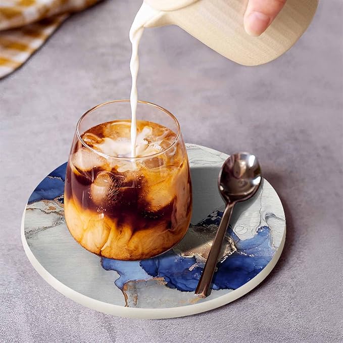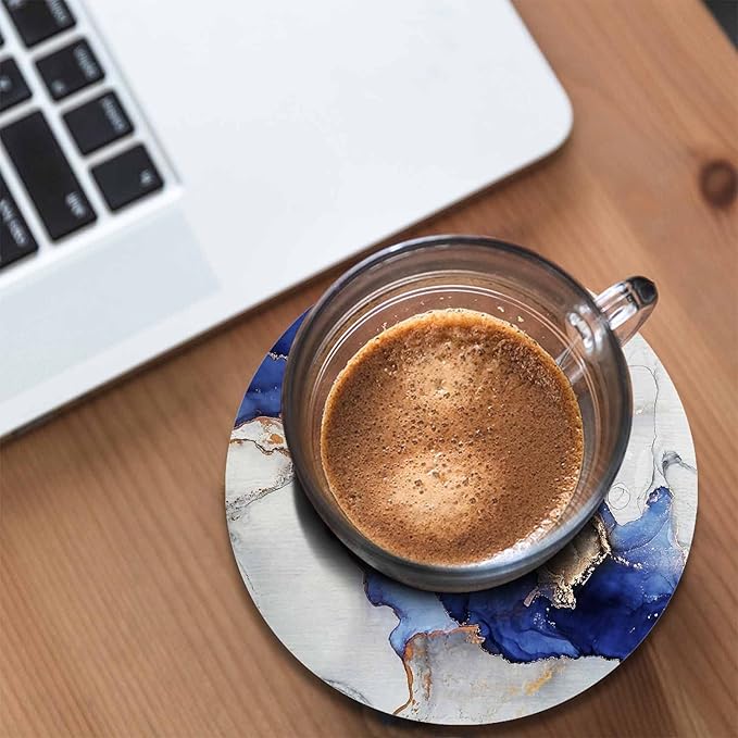 Blue and Gold Marble Coasters for Coffee Table Liquid Alcohol Ink Fluid Housewarming Presents for Women Men Home Decor Office Kitchen Living Room 2 Pcs