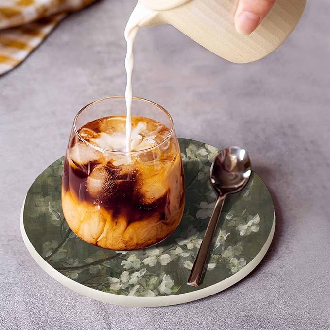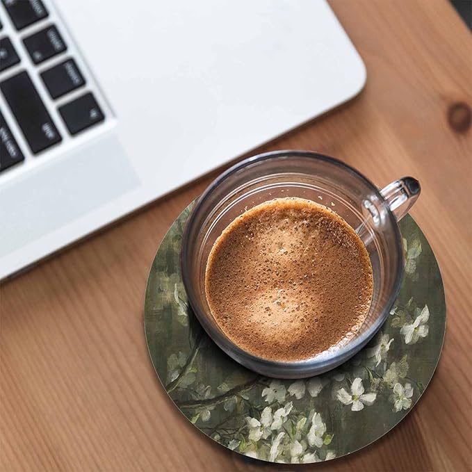Flowering Dogwood Coaster Oil Painting Design Beautiful Bouquet Floral Bloom Tabletop Protection for Any Table Type Wood, Granite, Glass, Soapstone, Sandstone, Marble, Stone Tables