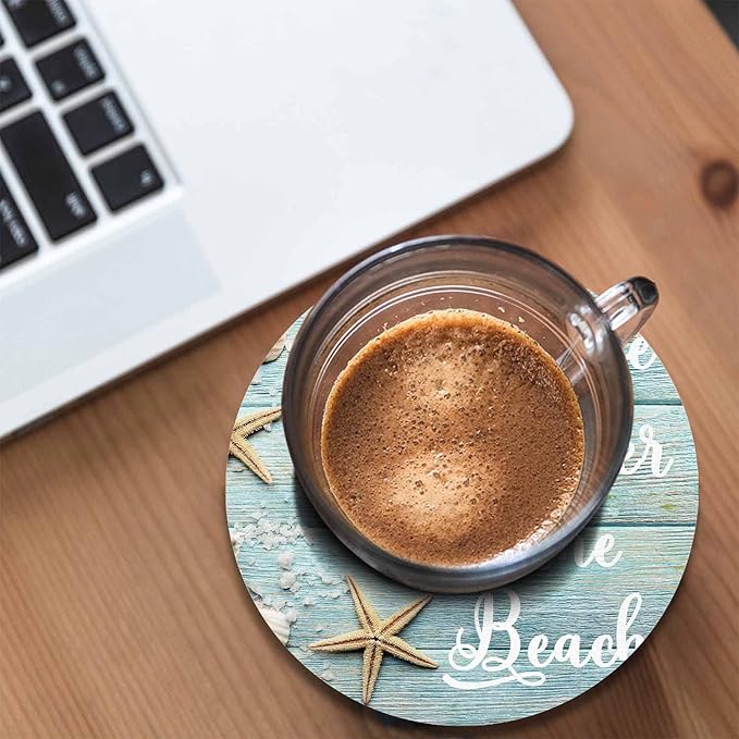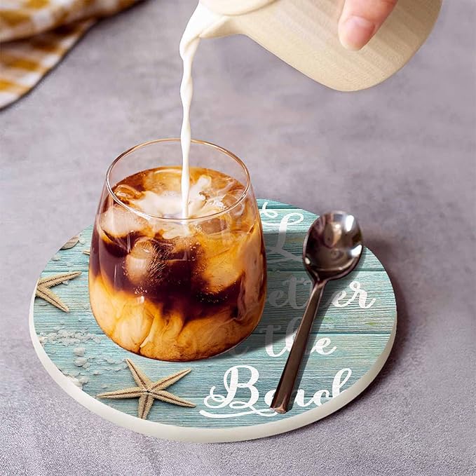 Life is Better at The Beach Drink Coaster for Tabletop Protection Summer Sand Sea Shells Starfishes Non-Slip Cups Place Mats Home Decor Diatomite Material for Men Women