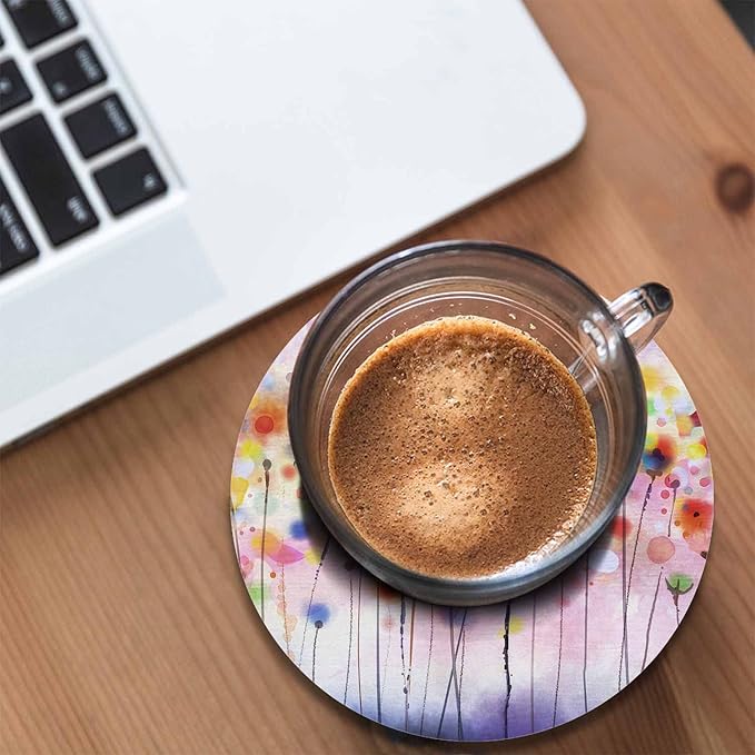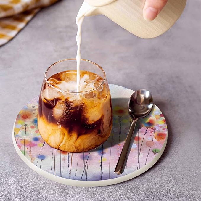 Watercolor Floral Coasters for Drinks Office Coffee Table Spring Flowers Soft Color Purple Pink Poppy Bloom Living Room Decor Set of 2 for Cold Drinks Wine Mugs and Cups 4 Inch