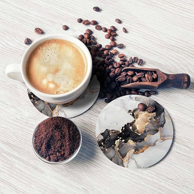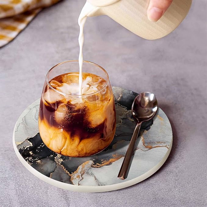 Alcohol Ink Painting Black Coaster Luxury Marble Liquid Global Texture Tabletop Protection for Any Table Type Wood, Granite, Glass, Soapstone, Sandstone, Marble, Stone Tables