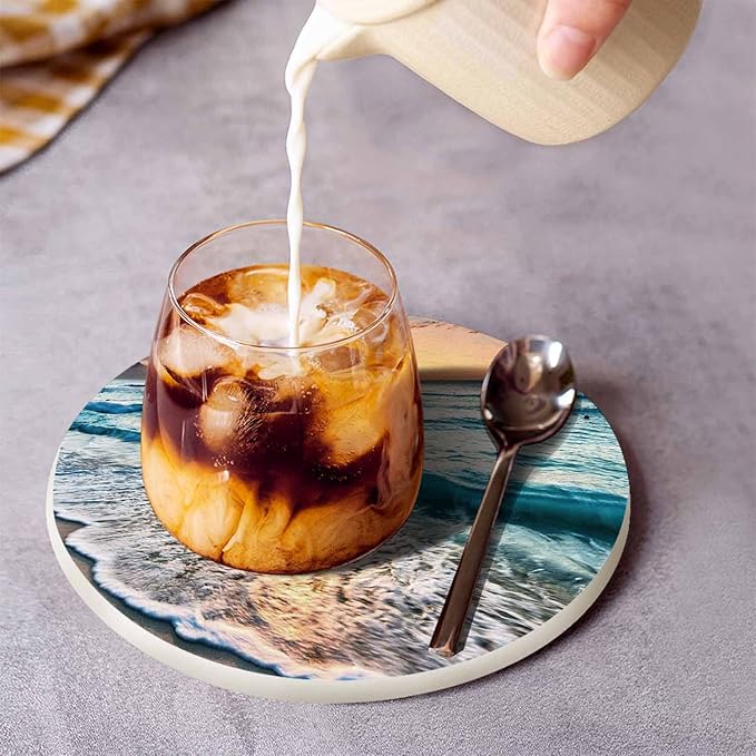 Beautiful Sea Wave and Sky at Sunset Cup Coasters for Table Clear Coast Beach Seascape Summer Travel Reusable Drink Coasters Set 2 Pcs Coffee Home Farmhouse Living Room Bar Decor
