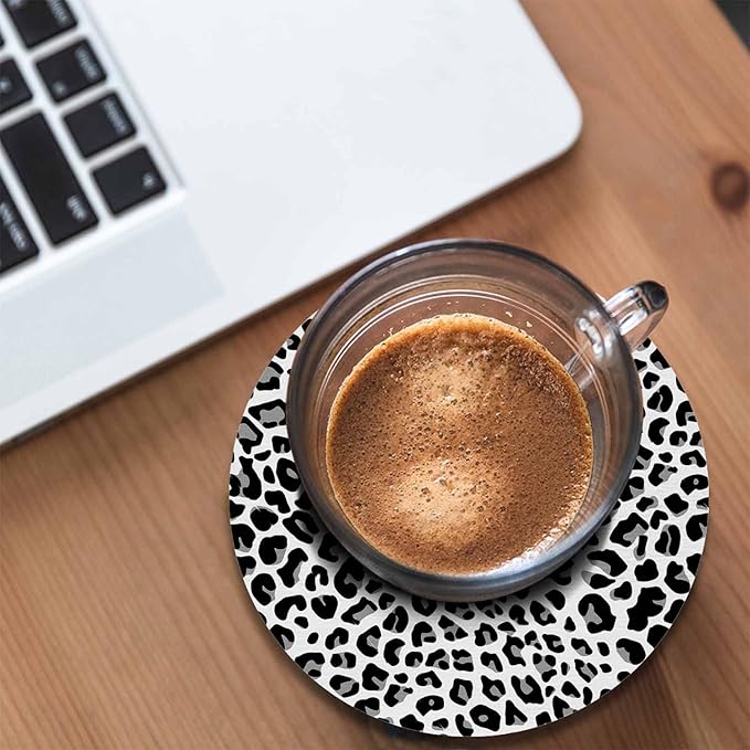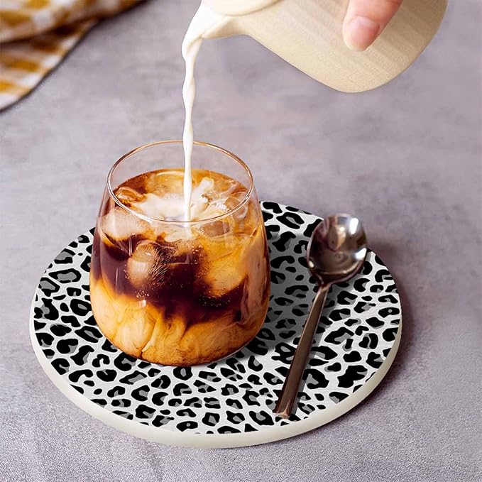 Leopard Pattern in Black and White Tones Round Coaster for Home Coffee Table Fashion Animal Decor Farmhouse Drink Coasters 100% Diatomite 4''X 4''X 0.35'' Printed Pattern