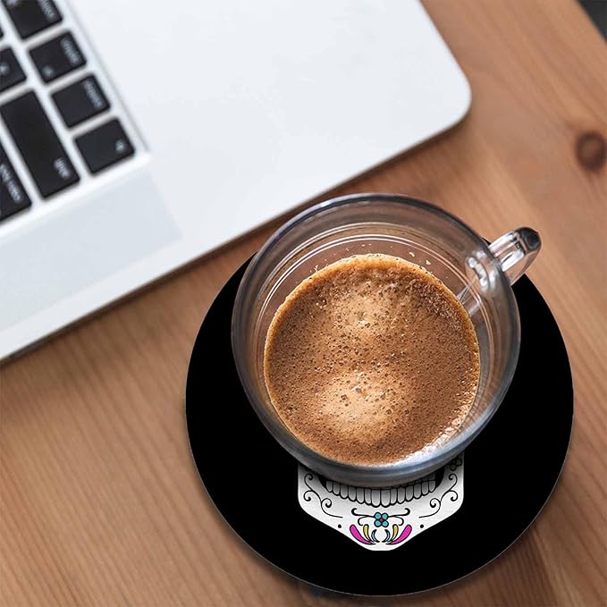 Sugar Skull Round Coaster for Home Coffee Table Human Head Mexican Spooky Skeleton Horror Bone Death Farmhouse Drink Coasters 100% Diatomite 4''X 4''X 0.35'' Printed Pattern