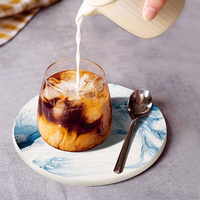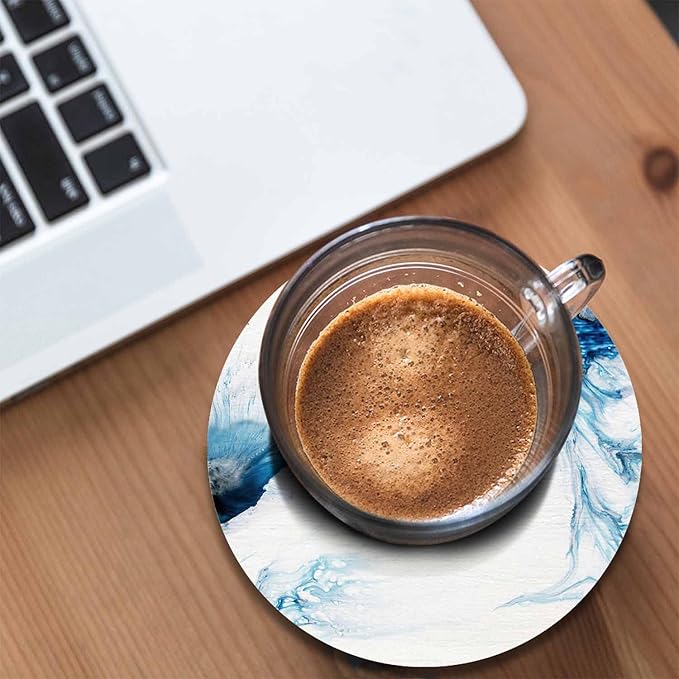 Blue Creative Liquid Coasters for Drinks 2 Pack Marble Texture Modern Contemporary Art Tabletop Protection Kitchen and Coffee Table Décor & Accessories,Set of 2