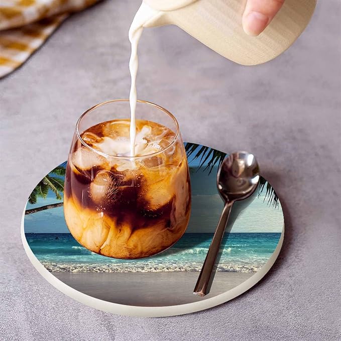 Vintage Beach Drink Coaster Ocean Beautiful Sea Coast Palm Trees Seascape Beautiful Home Decor Diatomite Heat-Resistant Diatomite 4 Inch for Cold Drinks Wine Mugs Cups
