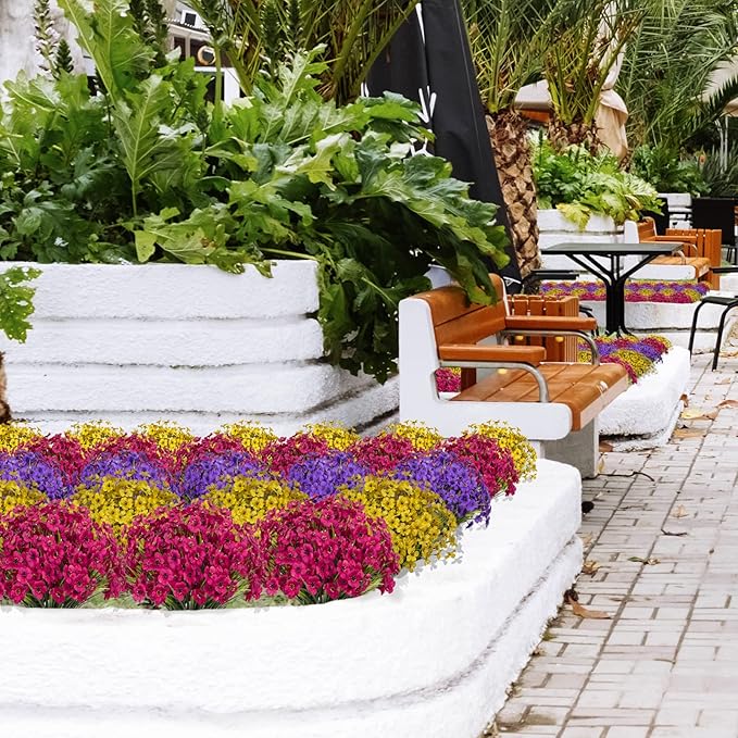 - 【Includes】15 Bundles of Artificial Silk Flowers, perfect to be plant in outdoor planters, hanging baskets or window boxes.