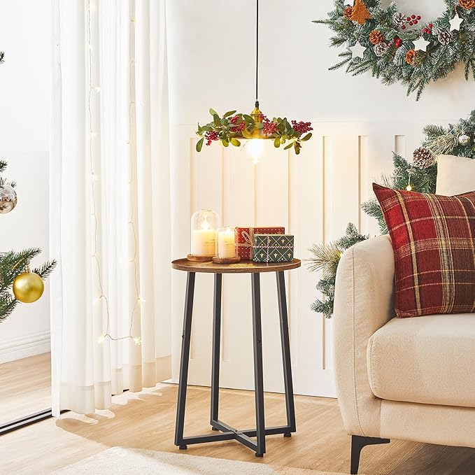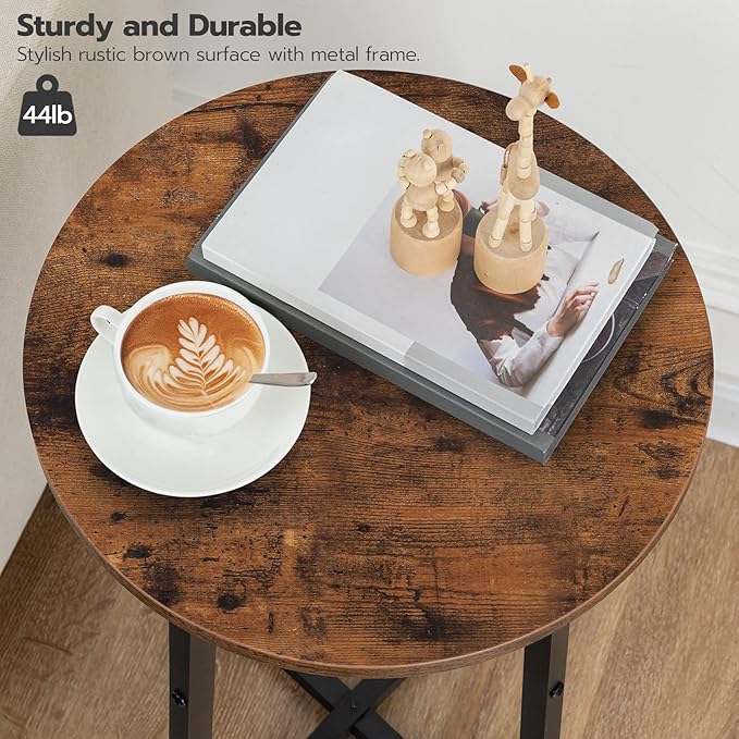 - Rugged Construction: The round end tables legs are crossed to form a solid angle to support P2 particleboard on tabletop, making the rustic table strong enough to hold up to 44 lb. It is a functional and beautiful end table that combines a stable construction with a modern look