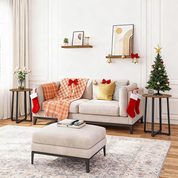 - Rugged Construction: The round end table legs are crossed to form a solid angle to support particleboard on tabletop, making the rustic table strong enough to hold up to 44 lb. It is a functional and beautiful end table that combines a stable construction with a modern look