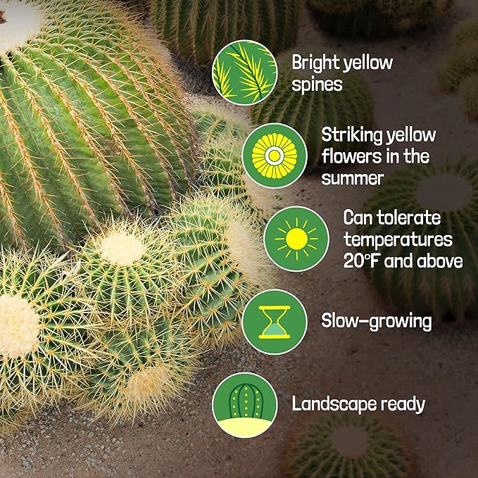 - PREMIUM QUALITY & SUSTAINABLY SOURCED: Our golden barrel cactus are grown in their native habitat right here in Southern Arizona. Barrel cacti offer subtle beauty and interest while also being very low maintenance! Barrel cacti look phenomenal in groupings and can handle intense environments such as hot days and moderately cold nights.