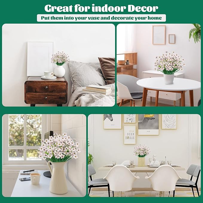 - 【High Quality&UV Resistant】:In order to extend life and maintain a fresh appearance for the best decoration, these artificial flowers are made of high-quality plastic that is resistant to uv,24PCS each plastic flowers have 5 flexible stems.