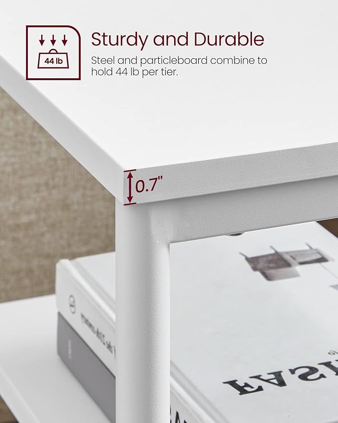 VASAGLE Side Table, Small End Table, Tall Nightstand for Living Room, Bedroom, Office, Bathroom, White ULET273W14