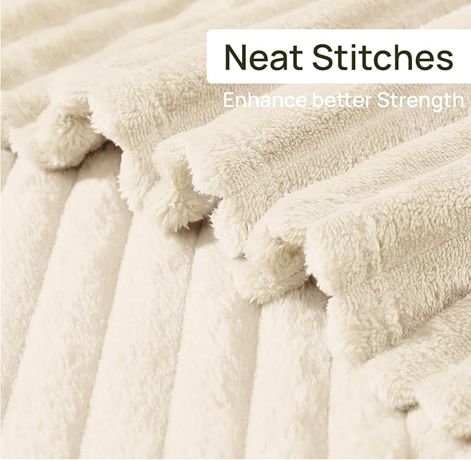 Geniospin Fleece Throw Blanket, 280GSM Extra Soft Lightweight Blanket with Strip, Plush Fuzzy Cozy Blankets and Throws for Couch, Bed, Sofa Cozy, Warm and Breathable (Ivory, 50x60 inches)