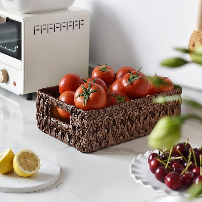 GRANNY SAYS Wicker Baskets with Handles,Small Woven Basket for Storage, Waterproof Storage Basket Organizer,Decorative Storage Boxes for Organing Pantry,Brown Basket,2-Pack,11 1/4''L x 7 1/2''W x 3 1/2''H