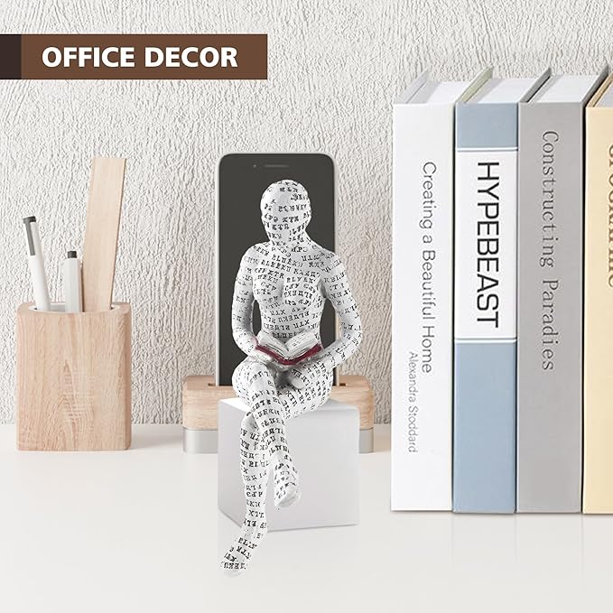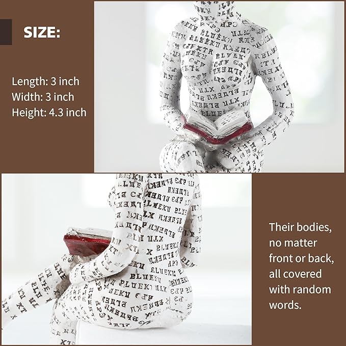 - [AESTHETIC DECOR] The reading women statue will be a special decor in your dining room or living room,office or bedroom, espacially fits on shelf and table. This sculpture looks like a woman reading a book. It is worth mentioning that this woman is covered with letters, which more intuitively shows the beauty and power of intellectual women.