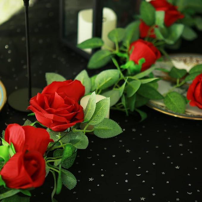 Felice Arts 2 Pack Burgundy Artificial Floral Garland Each 6.5FT Fake Rose Garland for Wedding Flowers Table Centerpiece Arrangement Teepee Mirror Decor