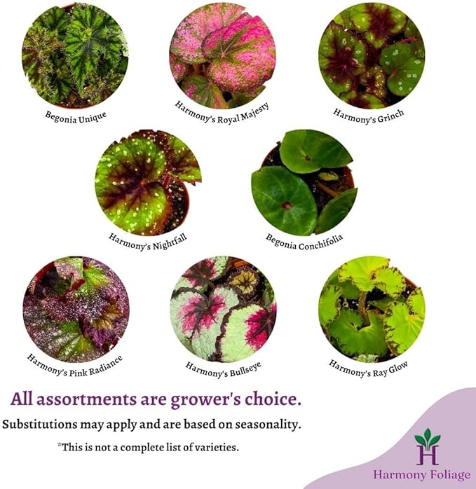 BubbleBlooms Harmony's Begonia Rex Assortment, Warm Summer Colors in a 4 inch Pot Set of 5
