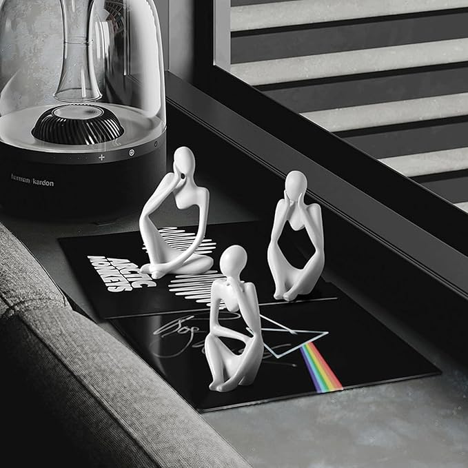 BrownLove 3pcs Decor White Thinker Statue Abstract Art Sculpture,Resin Collectible Figurines for Home Living Room Office Shelf Decoration