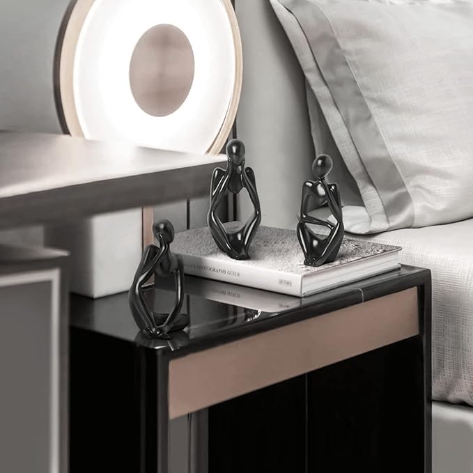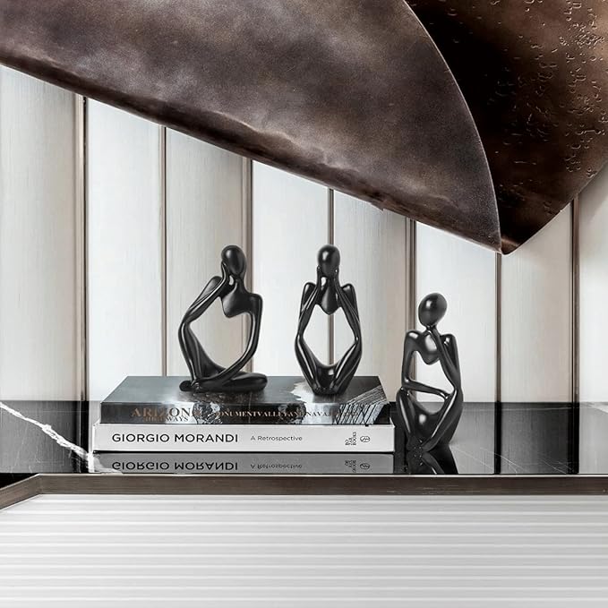 BrownLove 3pcs Decor Blcak Thinker Statue Abstract Art Sculpture,Resin Collectible Figurines for Home Living Room Office Shelf Decoration