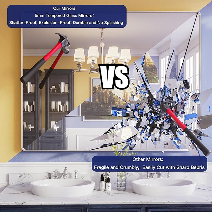 - 【Shatter-Proof Packaging】: Each mirror has a professional anti-collision waterproof packaging to reduce damage during shipping. This mirror is epoxy coated to resist corrosion. No corrosion after 30 days of acid testing.