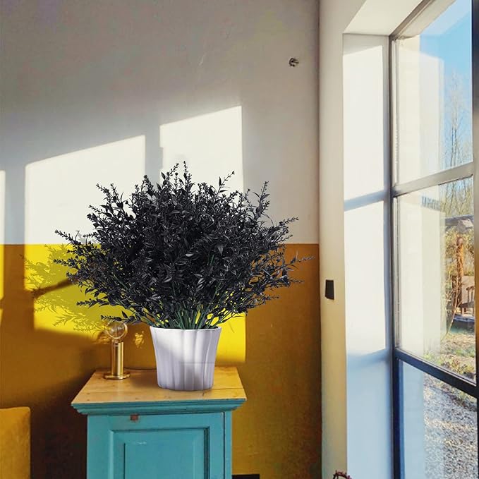 RECUTMS Black Decor 20 Bundles Artificial Flowers Fake Outdoor Plants Faux UV Resistant Lavender Flower Plastic Shrubs Indoor Outside Hanging Decorations (Black, 20 Bundles)