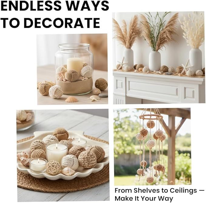 Nautical Rope Balls Decorative – 2 Inch – Set of 8 – Handmade from Jute and Cotton – for Farmhouse Bowl Fillers, Rustic Home Accents, or Table Decor – Perfect for Coastal Styling