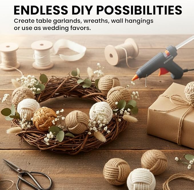 - PRODUCT QUALITY- This decorative handmade ball is made of non-scratchy jute and cotton yarns by skilled artisans and expertly knitted in a beautiful criss cross pattern. These spheres are tightly knitted and does not deform easily. It comprises premium quality material which prevents its look from degrading even after several years.