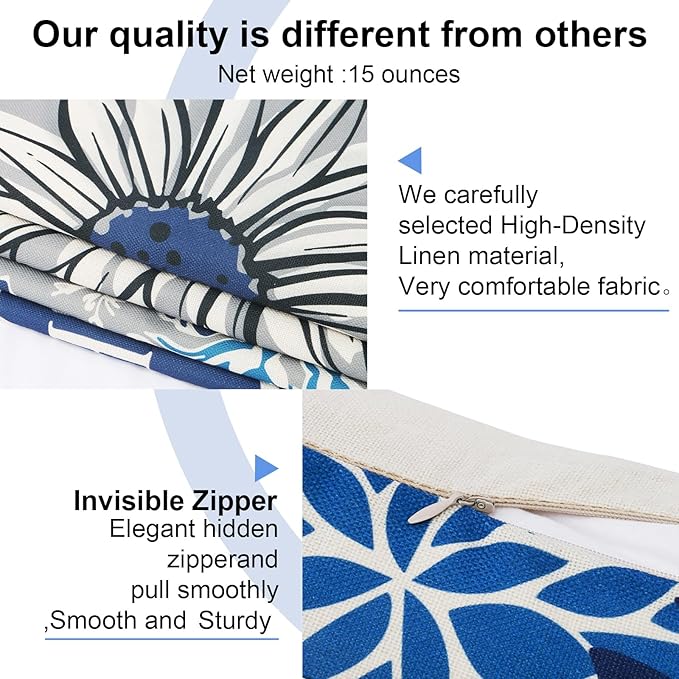 Decorative Throw Pillow Covers Set of 4 Blue Pillow Covers 18x18 inch Throw Pillow Cases Linen Square Pillow Case,Farmhouse Outdoor Modern Boho Pillow Covers for Couch Sofa Living Room