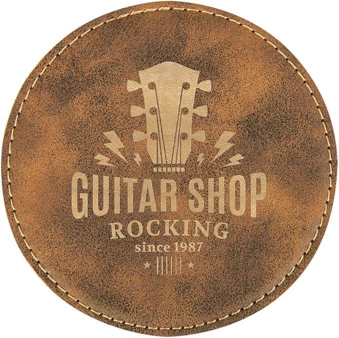 Custom Engraved Coasters | Personalized Leather Coaster | Set of 6 | Drink Coasters with Holder | Laser Engraved | Tabletop Protection | Gift for Couples (Round 4", Rustic w/Gold)