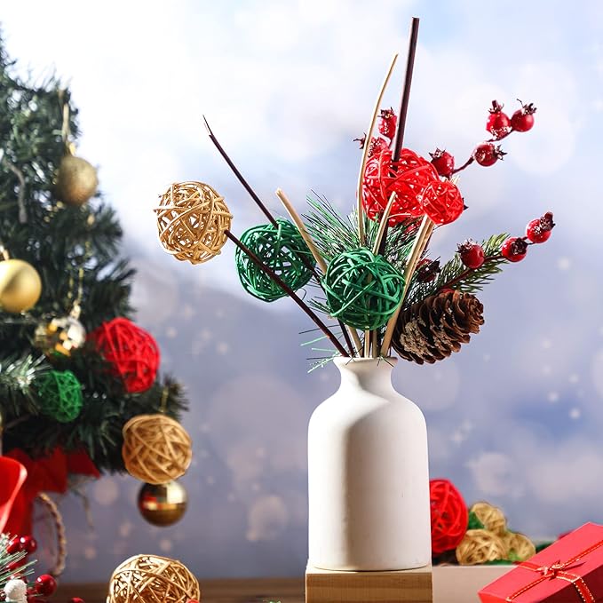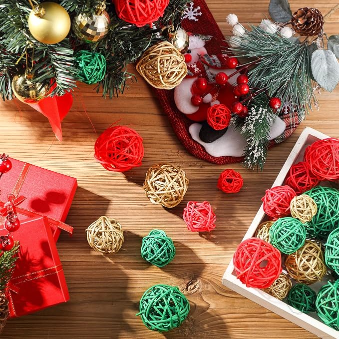 - Package Includes: you will get 36 pieces of Christmas wicker rattan balls with classic color match in red, green, gold, enough in quantity and rich in colors and you can share them with your friends