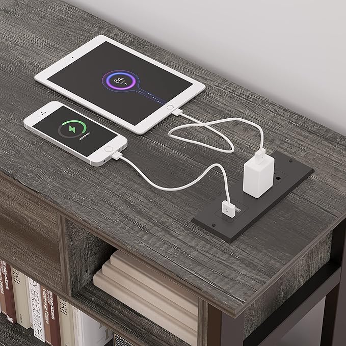 - Sofa Table with USB Ports & Outlets: Console table offers you the convenience of 2 USB ports & 2 power outlets, which allow you to charge multiple electronic devices and household appliances, including cellphones, tablets, TV, lamps, coffee machines etc.