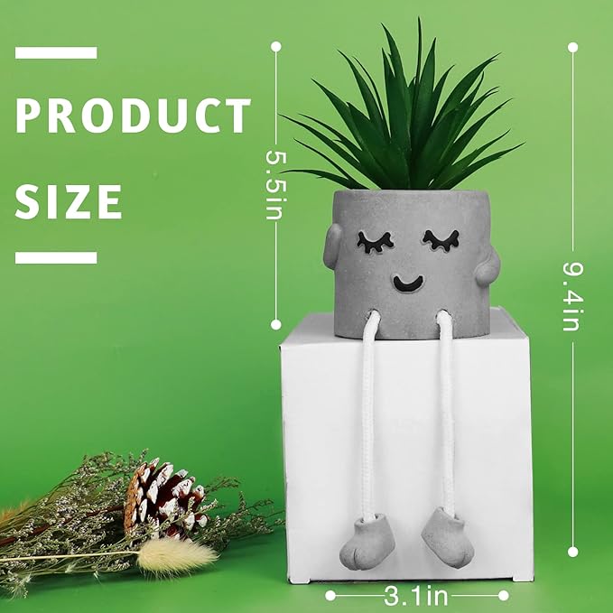 Zerzsy Artificialplant Succulents in Cement Pots with Hanging Leg, Kitchen Shelves Decor, Bathroom Shelf Decoration, Shelf Decoration Accents, Office Wall Decor - Set of 1