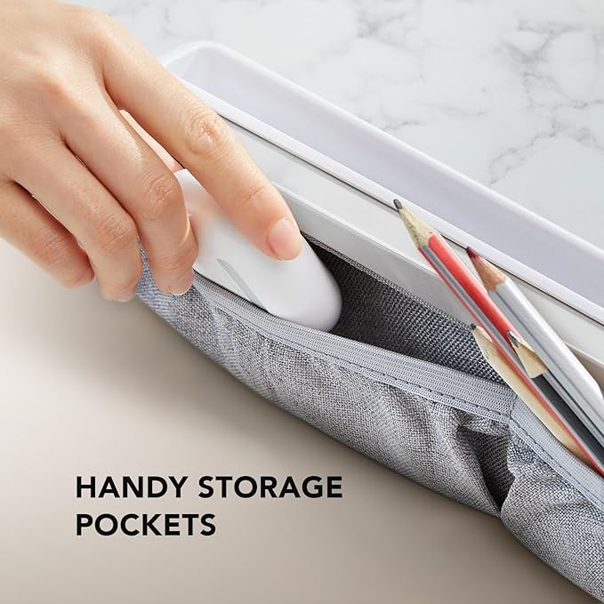 - CONVENIENT DESIGN: This lap desk features an anti-slip wrist pad, storage pocket, and tablet holder for maximum convenience.