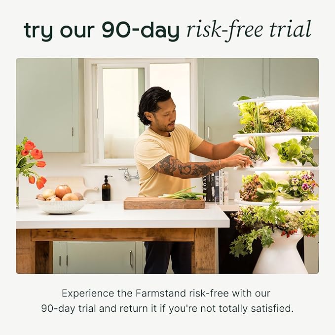 - 24 SEEDLING CREDITS: This starter kit includes a unique QR code on your Farmstand packing slip with instructions to redeem 24 seedlings from our website. Your special seedling bundle includes the best veggies, leafy greens, herbs, fruits and lettuce of the season. These pesticide free, non-GMO, pre-grown plants will have you harvesting 3 weeks early and help ensure your success. Seedlings not shippable to U.S. outlying territories.