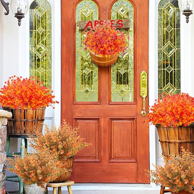- 🍁【UV Resistant】- Plastic plants is uv resistant, can be put outside,front porch, back deck, garden, veranda, balcony ,reservation where the hot weather kills much fresh flowers.