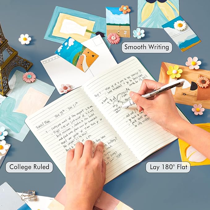 - These travel journals bulk for women have 92 blank lined pages (46 sheets), which would be sufficient for daily usage. The note taking notebooks have a smooth cover, round corners and tight stitching, which are designed to lay 180° flat. Some quick notes can help you remember important dates and find the page you want in a very short time.