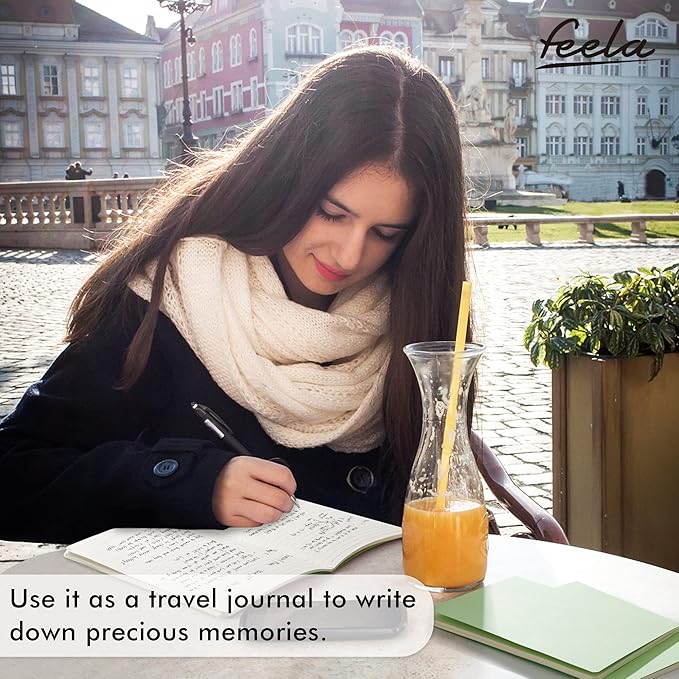 - Feela 8 Pack Soft Cover Journals include 8 light green A5 college ruled soft cover travel journals. 250 GSM colored paper cover outside and 80 GSM smooth writing lined pages inside.