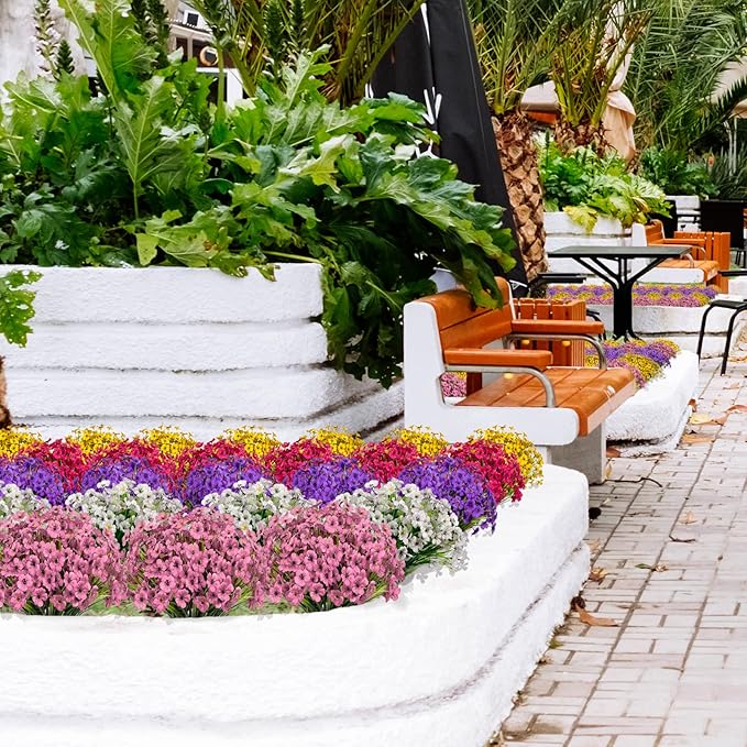 - 【Includes】15 Bundles of Artificial Silk Flowers, perfect to be plant in outdoor planters, hanging baskets or window boxes.