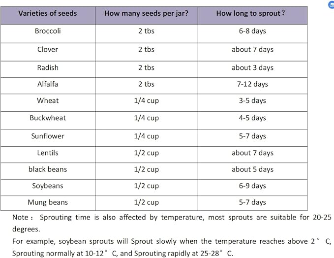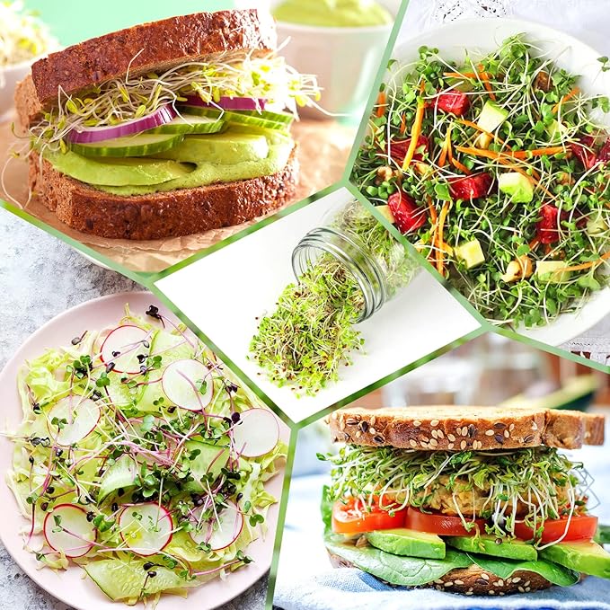 - 🥗EASY & HEALTHY SPROUTING AT HOME - Our sprouting kits make it easy to grow a variety of nutritious sprouts at home. Healthy and delicious ingredients for your sandwiches, salads, and soups! Growing sprouts is not only a fun process, but it's also a cheap way to get fresh sprouts! For $29.99 you can have a whole year's worth of sprouts. or even 3 years, 5 years, 10 years.