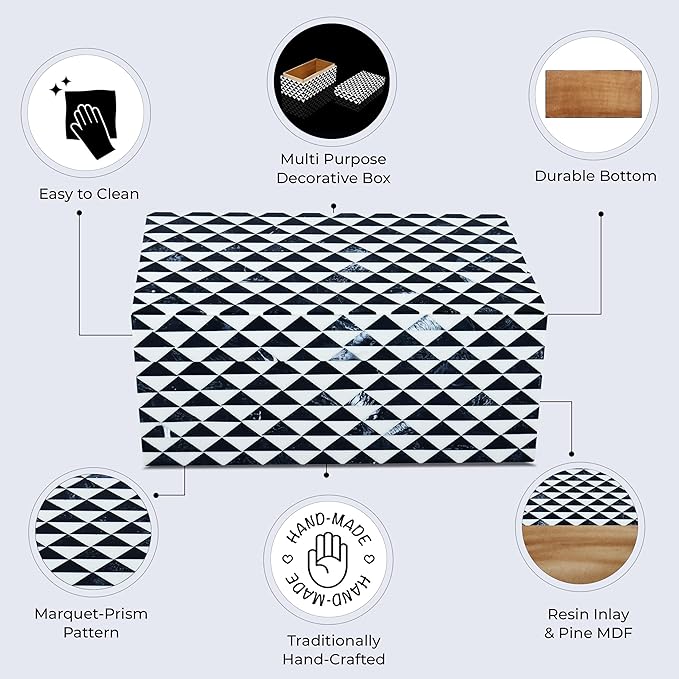 - Craftsmanship Through Three Generations: Made from premium materials including Resin Inlay & Pine MDF, this sturdy and durable box ensures your valuables are kept safe. The smooth finish and detailed craftsmanship make it a beautiful addition to your home.