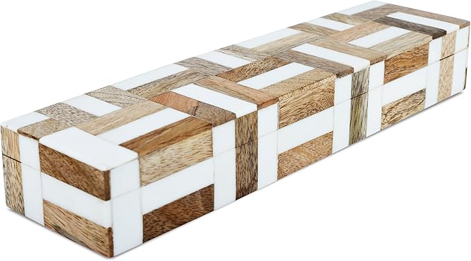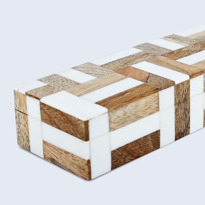 - Chic Resin & Wood Design – Highlighted by a bold pattern of crisp white resin and rich wood tones, this handcrafted box delivers a designer touch. Its neutral palette easily integrates into modern Pinterest inspired spaces and warm, earthy interiors.