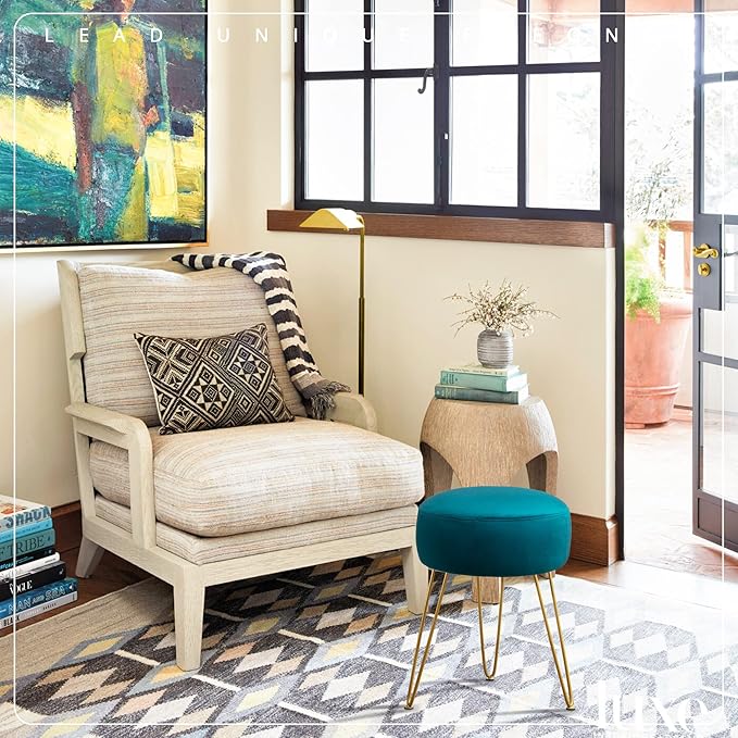 LUE BONA Vanity Stool, Teal Vanity Stools for Makeup Room, Round Ottoman Foot Stool, Velvet Footrest Vanity Chair for Bathroom Vanity, Bedroom, Living Room, Entryway, Offices