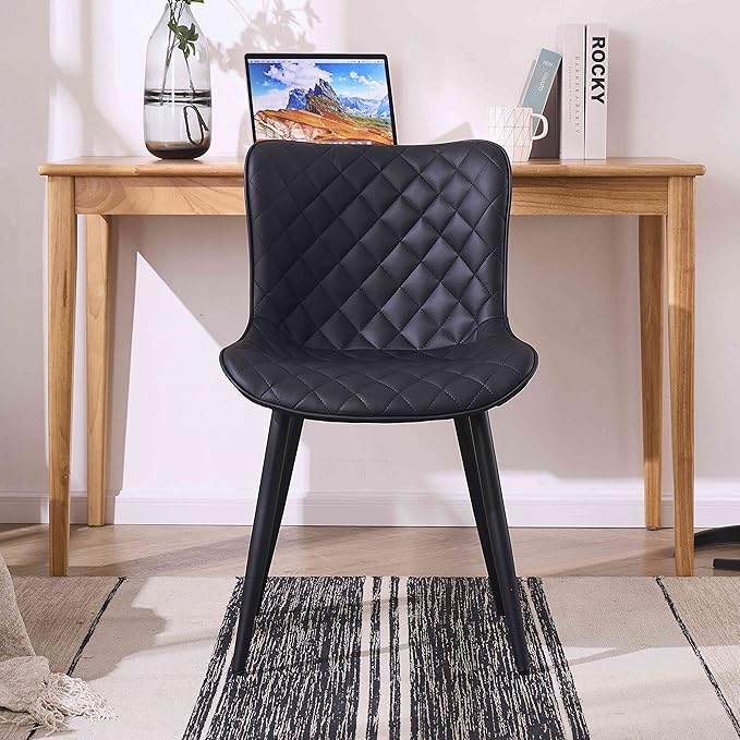 YOUTASTE Black Dining Chairs Set of 2, PU Leather Upholstered Mid-Century Modern Chair, with Thick Padded Back and Metal Legs, for Kitchen, Dining Room, Vanity, or Guest Waiting Room