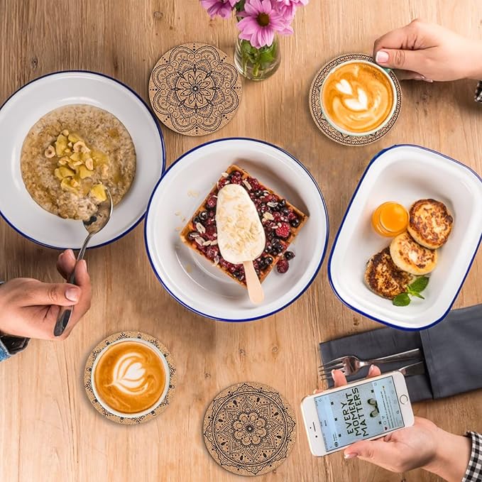 Coasters for Drinks 12 pcs Absorbent Cork Coasters with Flower Pattern Housewarming Gifts for New Home Present for Friends, Living Room Decor, Apartment Decor