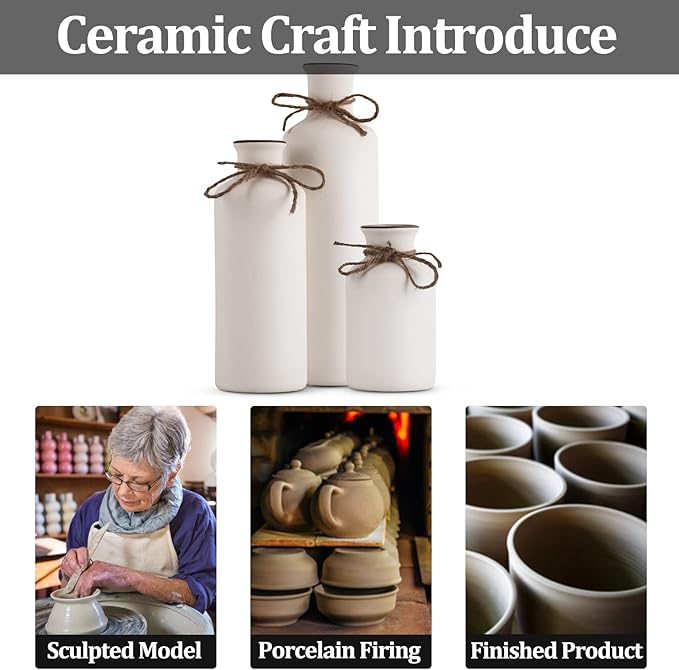 - Long Lasting And Maintenance Free- Crafted From 100% Ceramic, This White Vase Set, Decorative Vases For Home Decor Combine A Modern Vases Style, White Accents Are Strong And Play A Role In Enhancing The Interior Decoration, Making Your Home Look Warmer, The Main Thing Is That It Maintenance Free And You Can Save A Lot Of Time