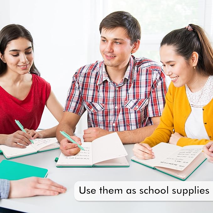 - Feela 24 Pack Classic Ruled Notebooks contains 24 aqua ruled sturdy cover notebooks and 24 Black Retractable Pens. Each of the notebooks measures 8.3” x 5.1”, which is perfect to carry and easily held by young girls and boys. These black cute pens are customized to be placed in the pen holder, which is pretty convenient.